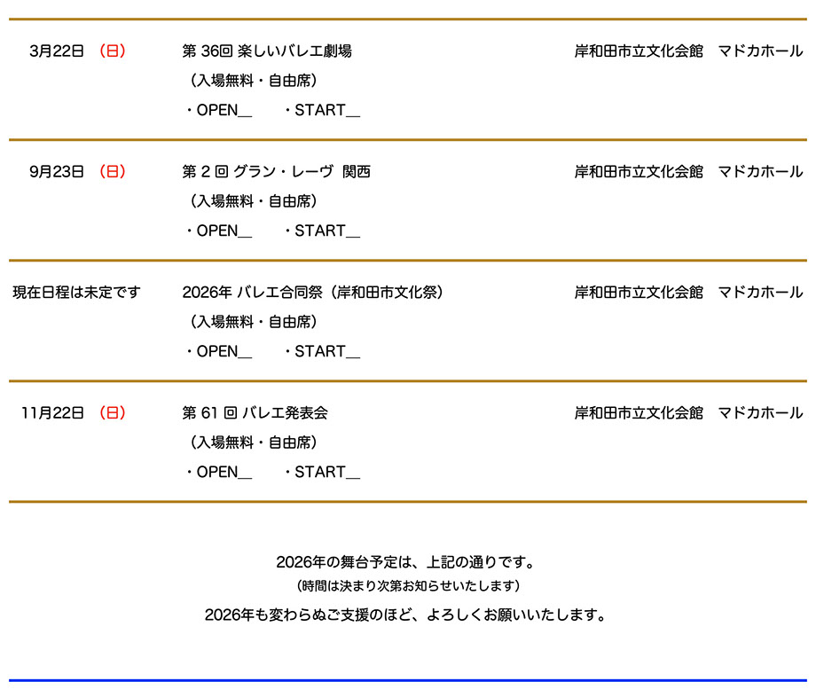 ■ 2026年 公 演 予 定 ■